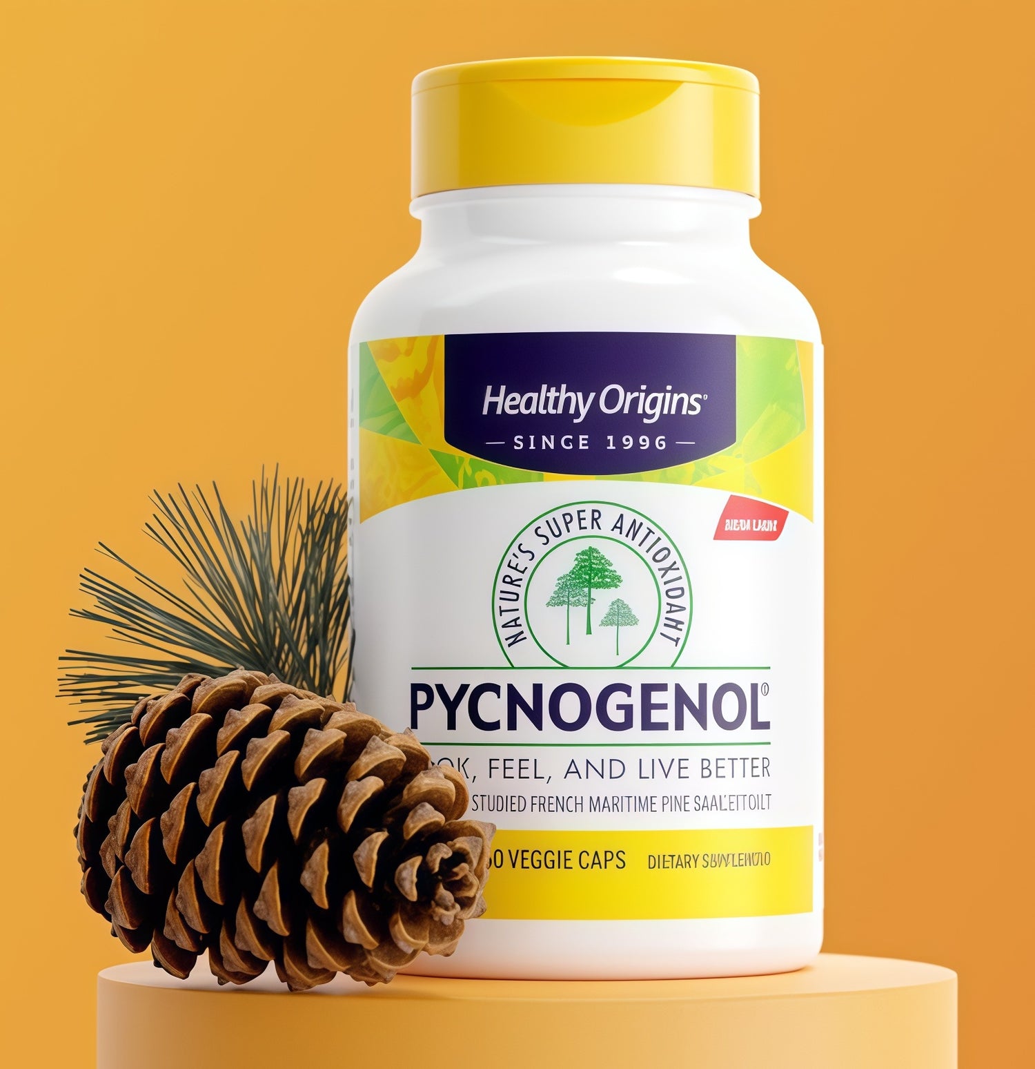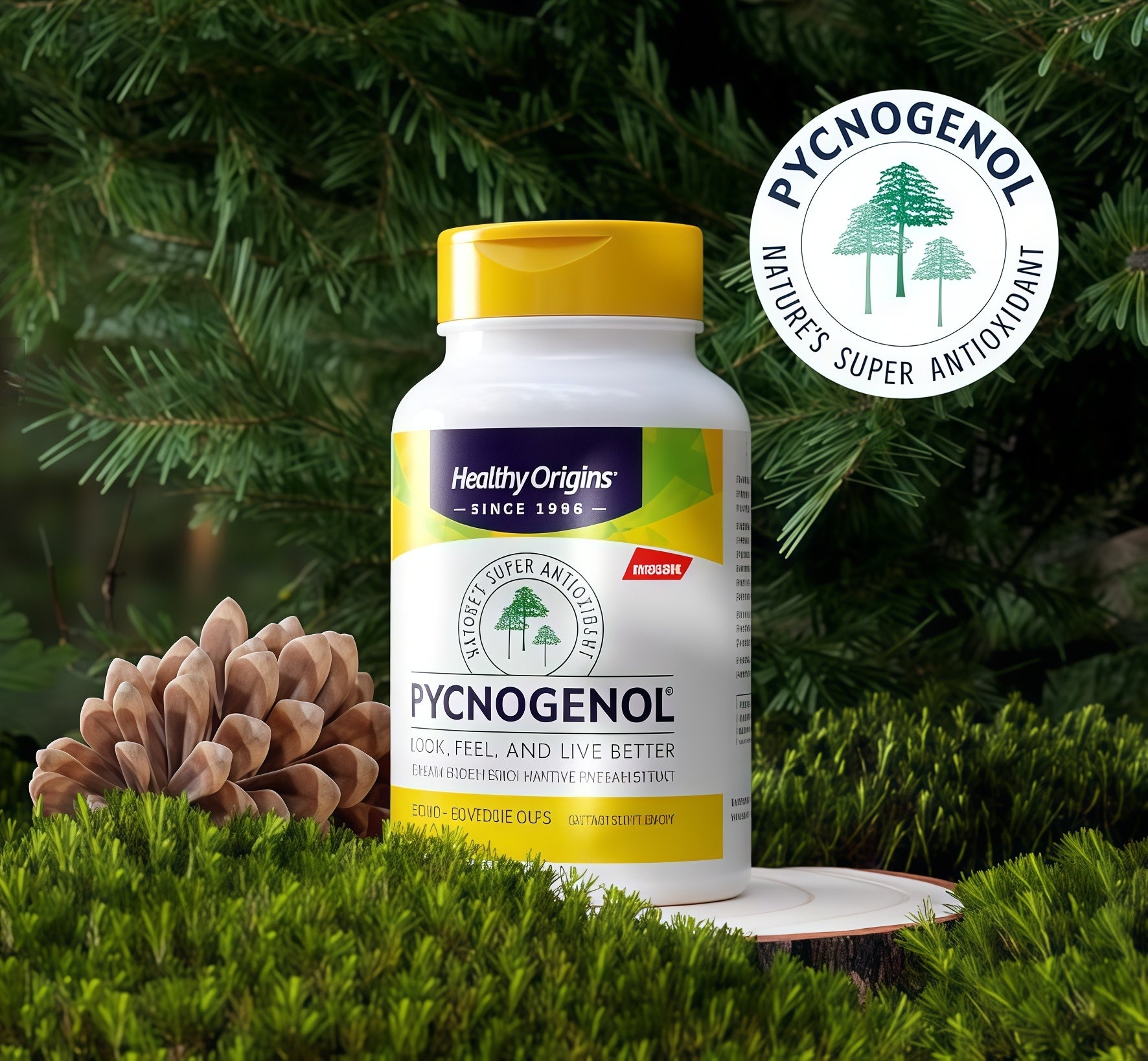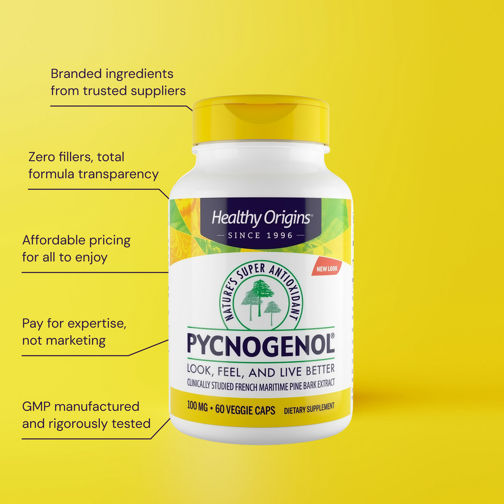 Healthy Origins Pycnogenol is an extractoriginating from the bark of the maritimepine tree that grows along the coast ofsouthwestern France.*